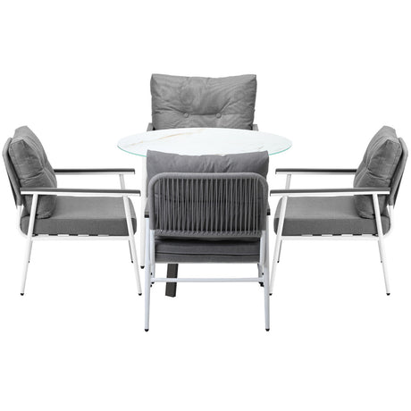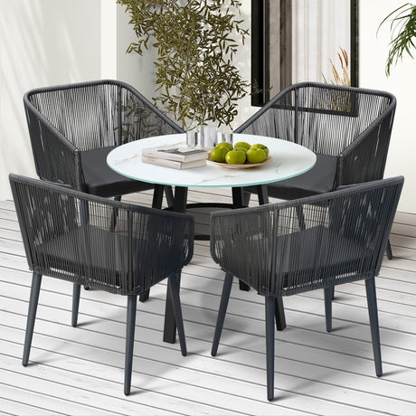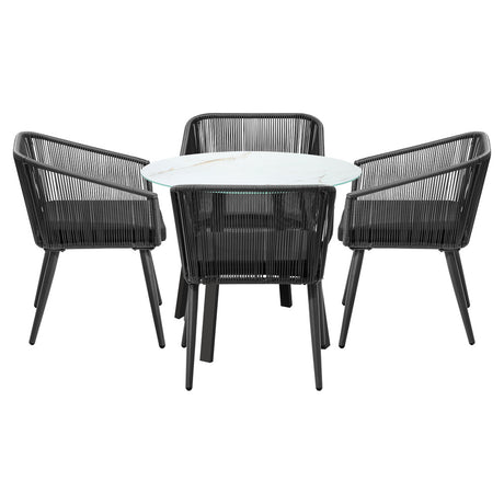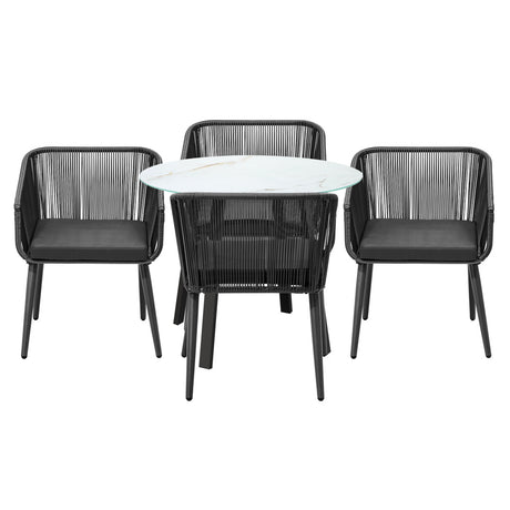 Livsip Outdoor Dining Set 4 Seater Marble Tempered Glass Table
