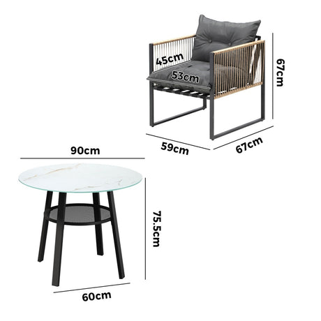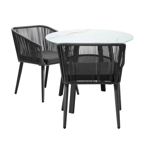 Livsip Outdoor Dining Set 2 Seater Rattan Armchair Glass Table