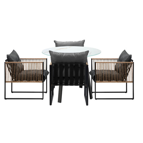 Livsip Outdoor Dining Set 4 Seater Rattan Armchair Glass Table