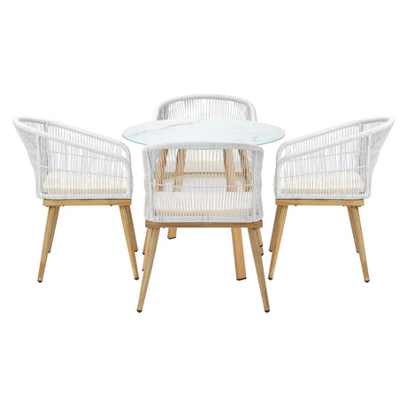 Livsip Outdoor Dining Set Rattan White Chairs Setting 5PC
