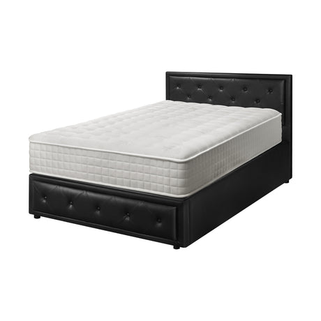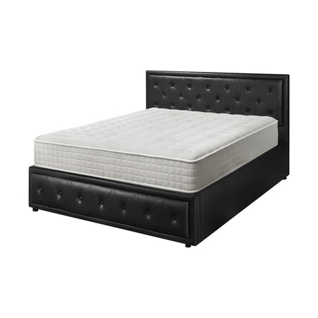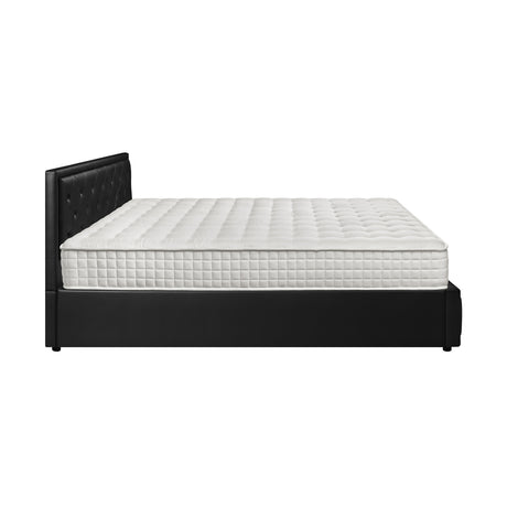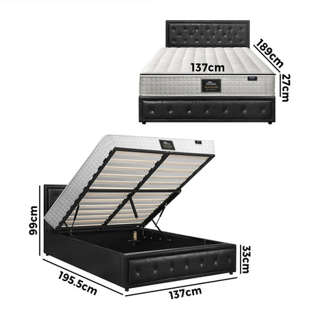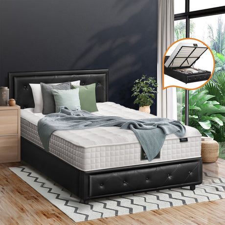 Oikiture Bed Frame with Mattress Double Size Gas Lift Black Leather
