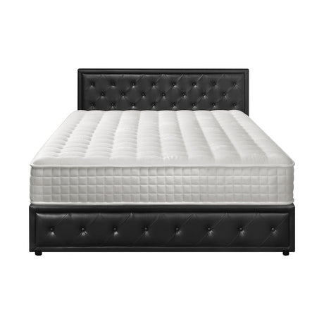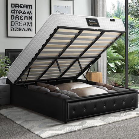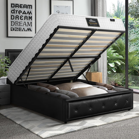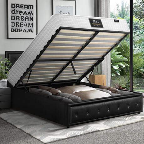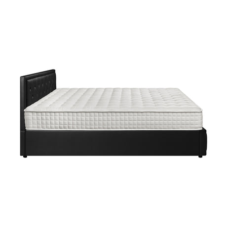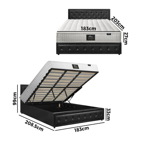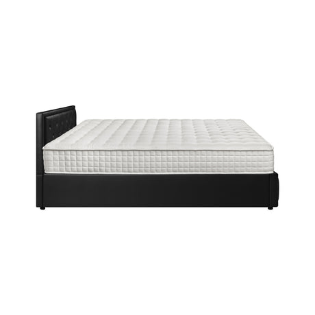 Oikiture Bed Frame with Mattress Queen Size Gas Lift Black Leather