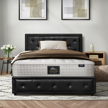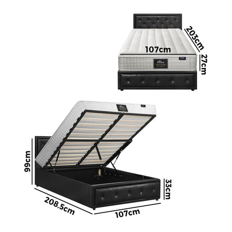 Oikiture Bed Frame with Mattress King Single Gas Lift Black Leather