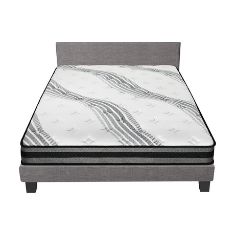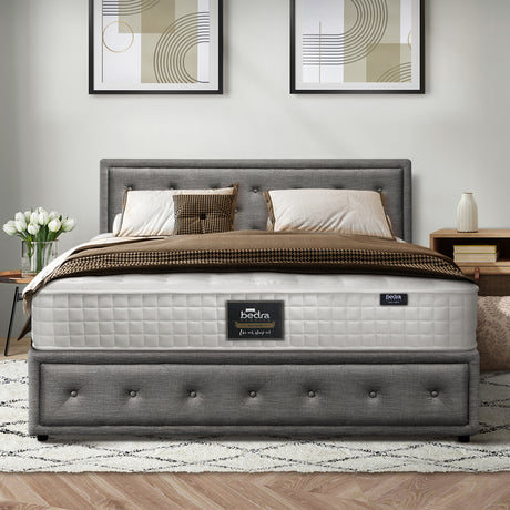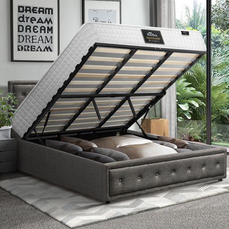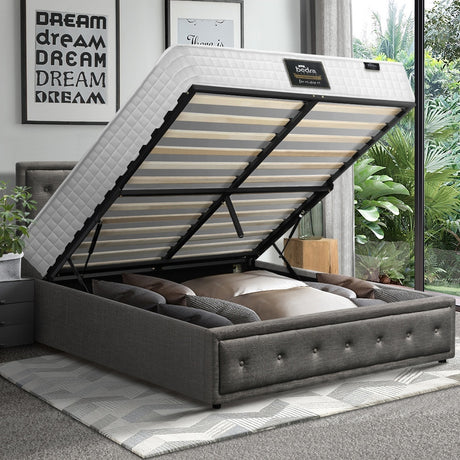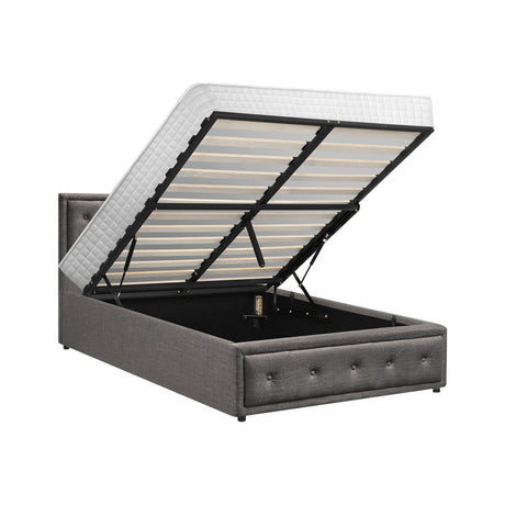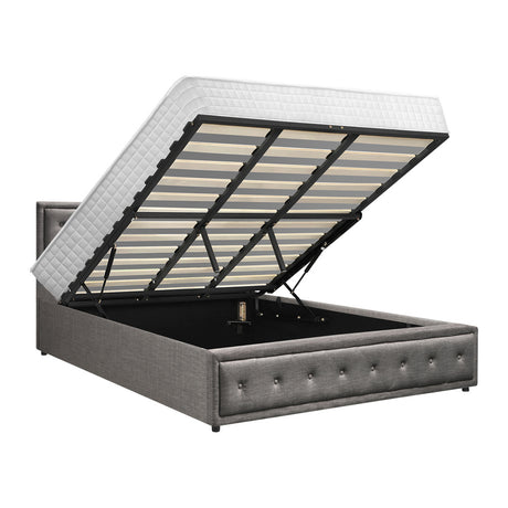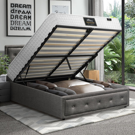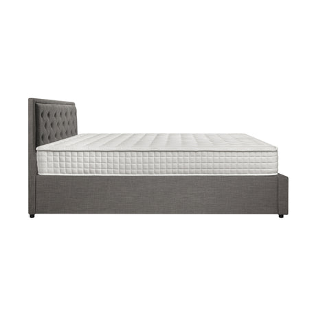 Oikiture Bed Frame with Mattress Queen Size Gas Lift Grey Fabric