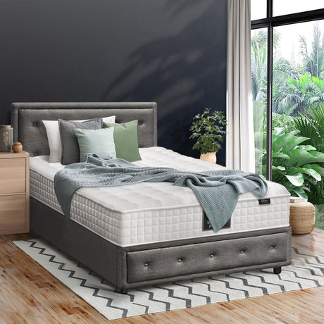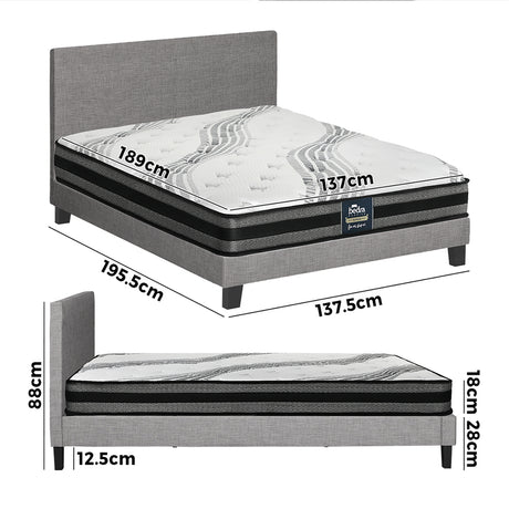 Oikiture Bed Frame with Mattress Double Size Gas Lift Grey Fabric