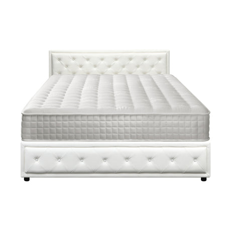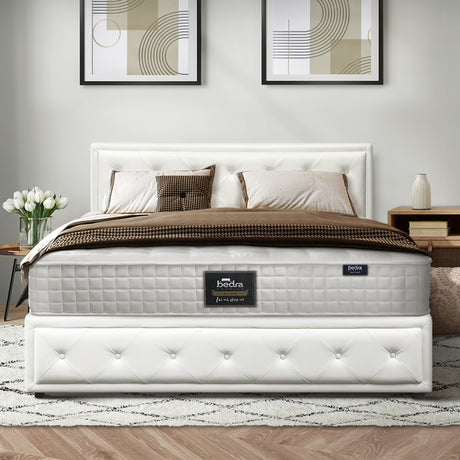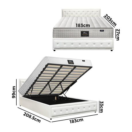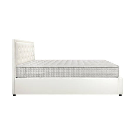 Oikiture Bed Frame with Mattress Queen Size Gas Lift White