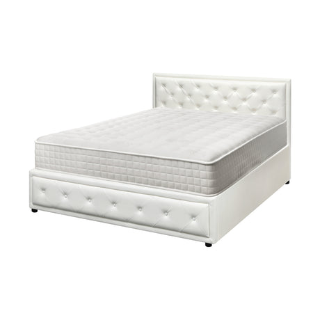 Oikiture Bed Frame with Mattress Set Double Size Gas Lift White