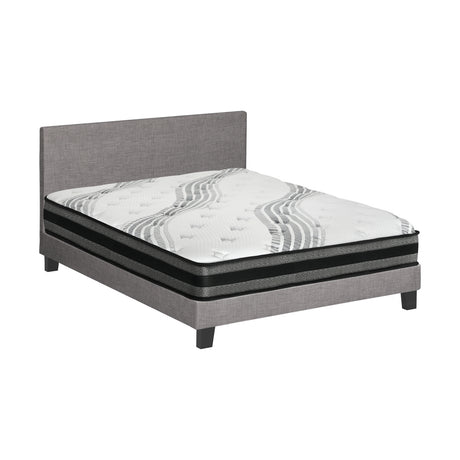 Oikiture Bed Frame with Double Size Mattress Set Grey Fabric