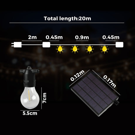 Mazam 20M Solar LED Festoon String Lights Christmas Waterproof