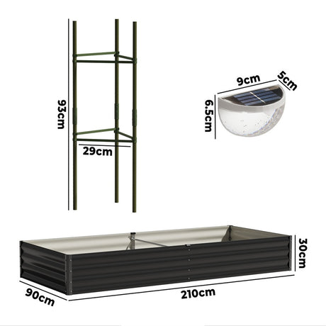 Livsip 2x Garden Bed 210x90x30cm LED Plant Stand Box Galvanise