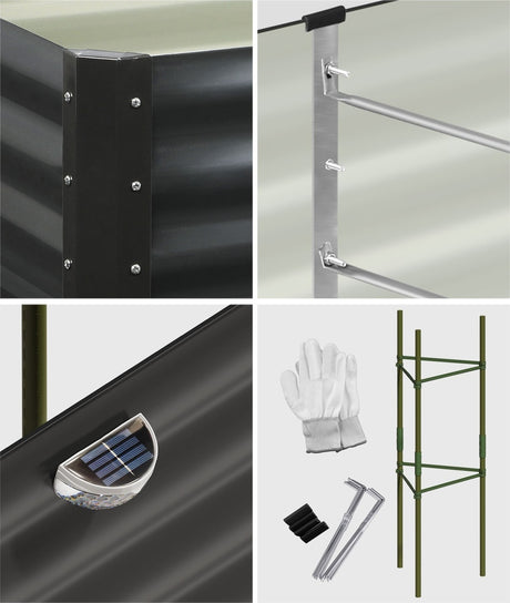 Livsip 4x Garden Bed 210x90x30cm LED Plant Stand Box Galvanise