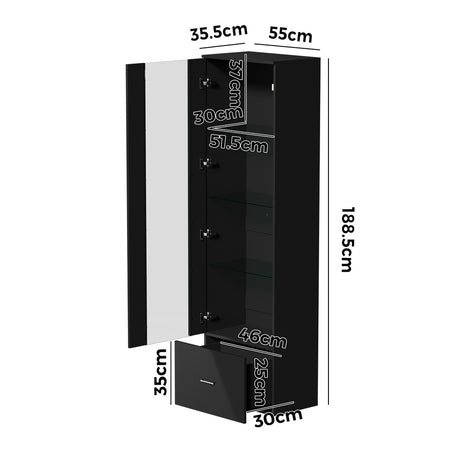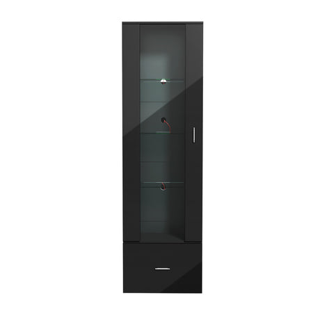 Oikiture Buffet Sideboard LED High Gloss Glass Door Black