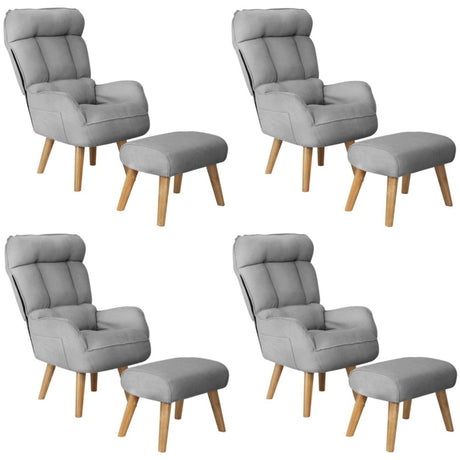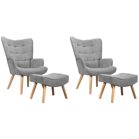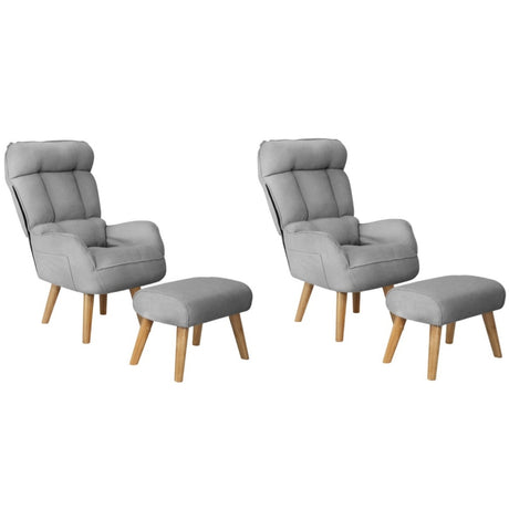 Oikiture 2x Armchair Lounge Chair Ottoman Fabric Sofa Grey