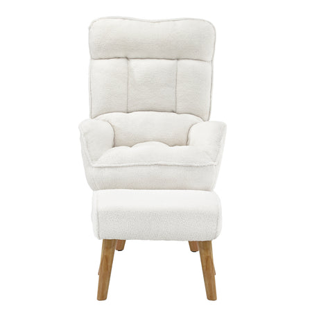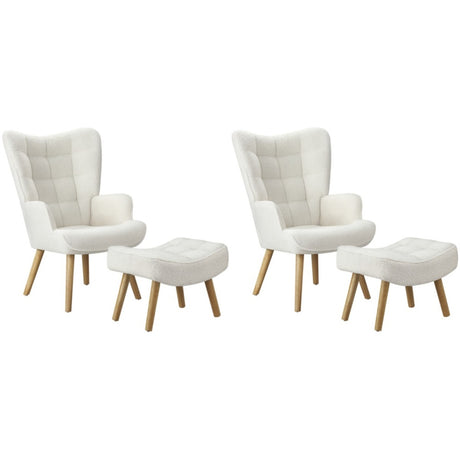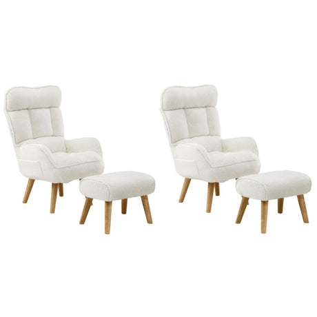 Oikiture 2x Armchair Lounge Chair Ottoman Sherpa Sofa White