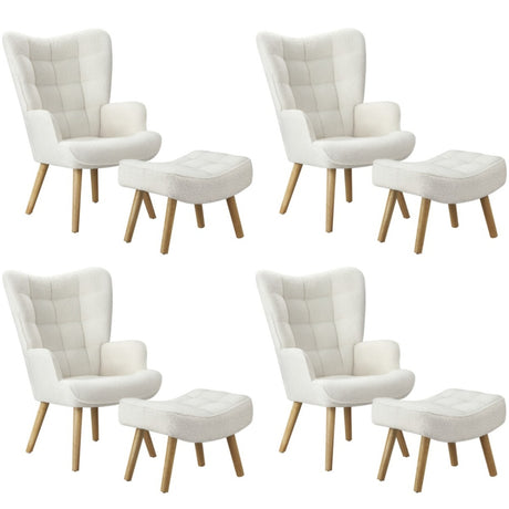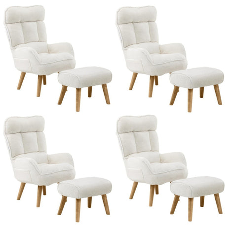 Oikiture 4x Armchair Lounge Chair Ottoman Sherpa Sofa White