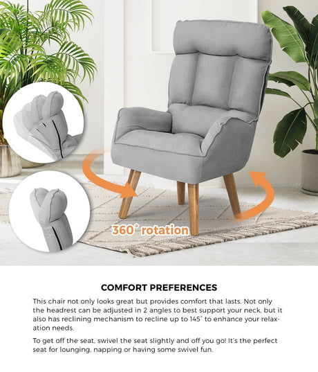 Oikiture 4x 360 Swivel Recliner Armchair Lounge with Stool Grey