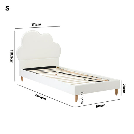 Oikiture Bed Frame Single Size Kids Bed Frame White Leather