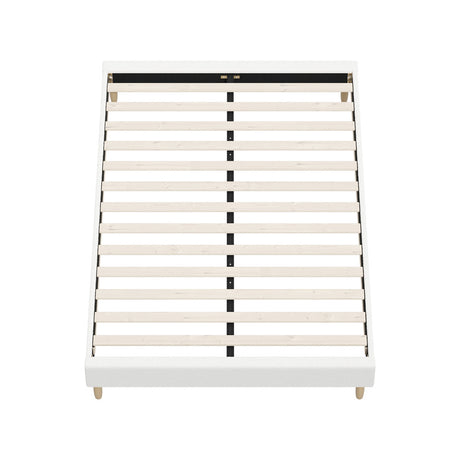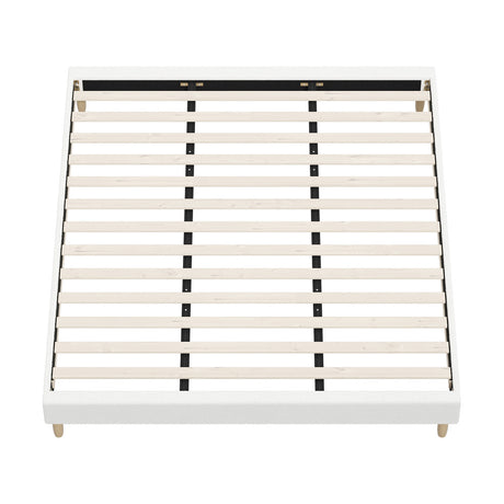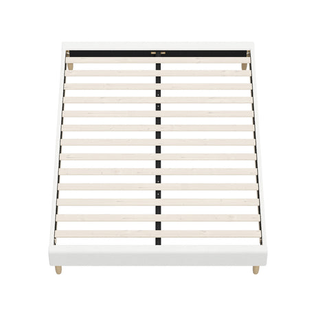Oikiture Bed Frame Queen Size Bed Base White Boucle