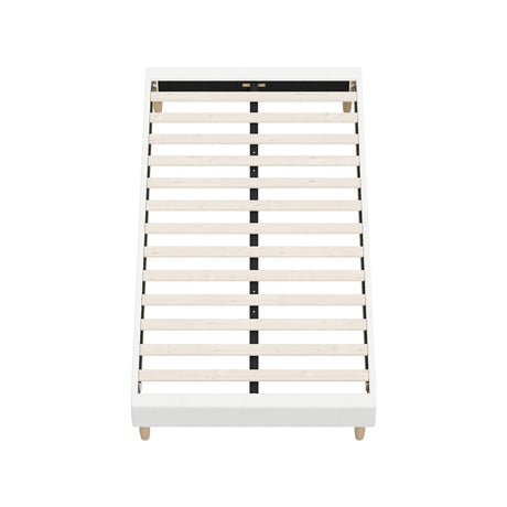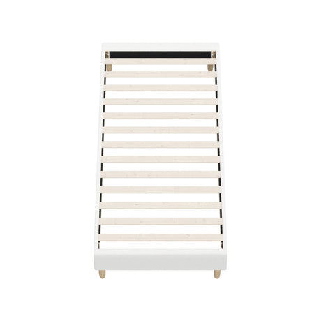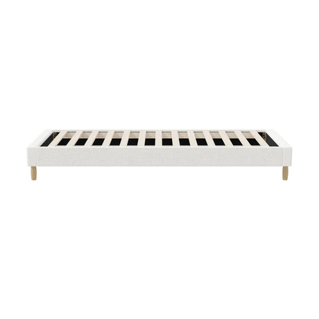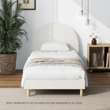 Oikiture Bed Frame Single Size Bed Base White Boucle