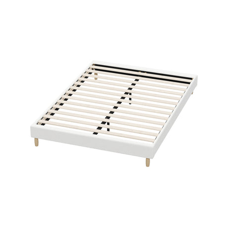 Oikiture Bed Frame Double Size Bed Base White Boucle
