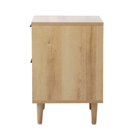 Oikiture Bedside Table Nightstand 2 Drawers Natural