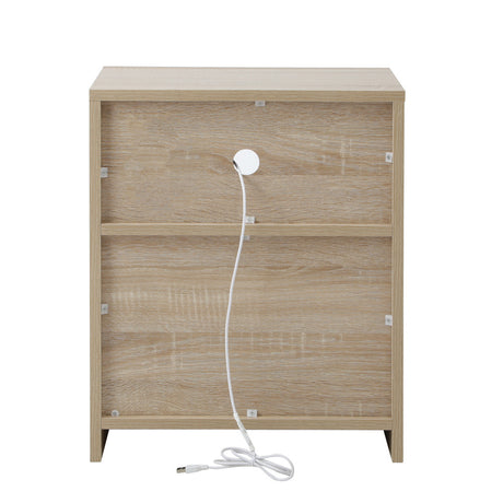 Oikiture Bedside Table LED Nightstand Shelf Natural