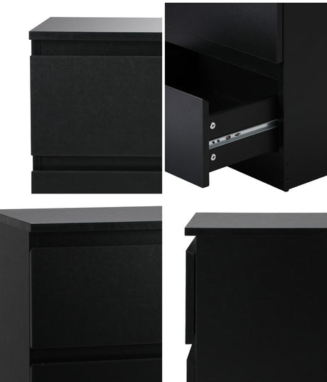 Oikiture Bedside Table Nightstand 2 Drawers Black