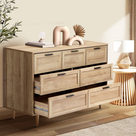 Oikiture 7 Chest of Drawers Dresser Tallboy Natural