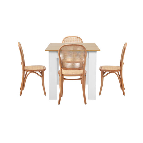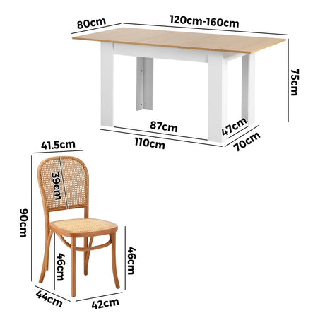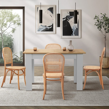 Oikiture 160cm Extendable Dining Table with 4PCS Chairs Rattan Natural