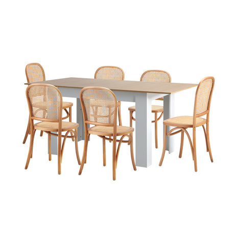 Oikiture 160cm Extendable Dining Table with 6PCS Chairs Rattan Natural