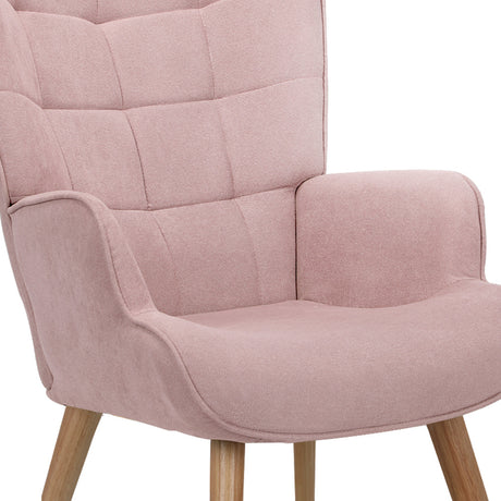 Oikiture 2x Armchair Lounge Chair Ottoman Fabric Sofa Pink