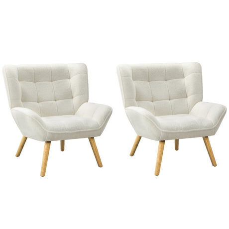 Oikiture 2x Armchair Sofa Lounge Sherpa Upholstered Tub White