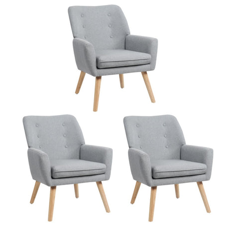 Oikiture 3x Armchair Lounge Chair Linen Tub Chairs Sofa Grey