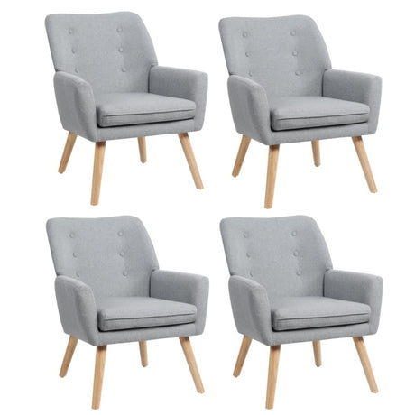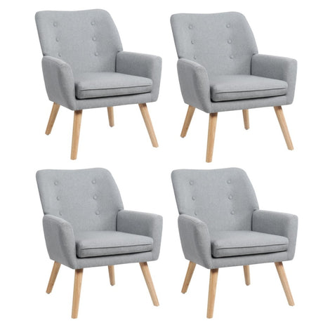 Oikiture 4X Armchair Lounge Chair Couches Sofa Wood Light Grey