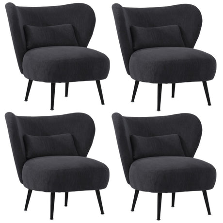Oikiture 4x Armchair with Lumbar Pillow Wingback Velvet Charcoal