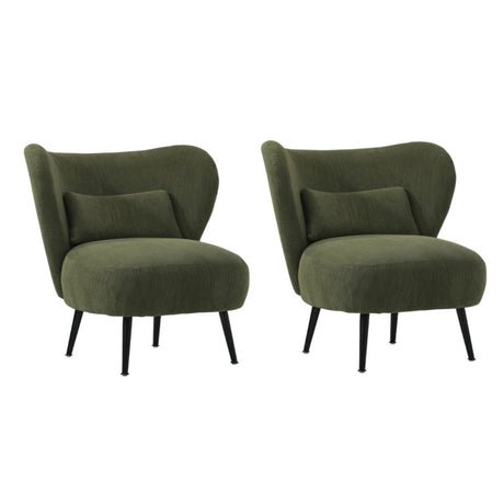 Oikiture 2x Armchair with Lumbar Pillow Wingback Velvet Green