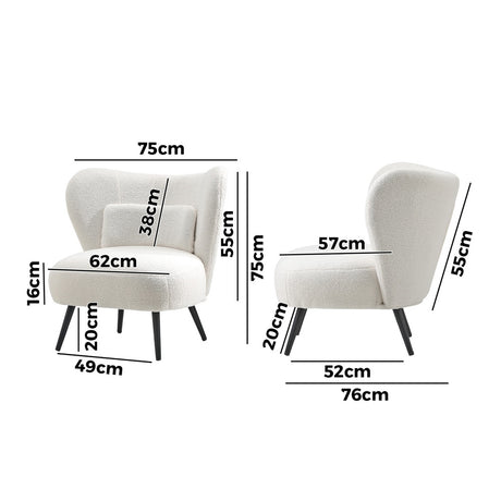 Oikiture 2x Armchair Lounge Chair Sherpa Tub Chairs Sofa White