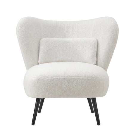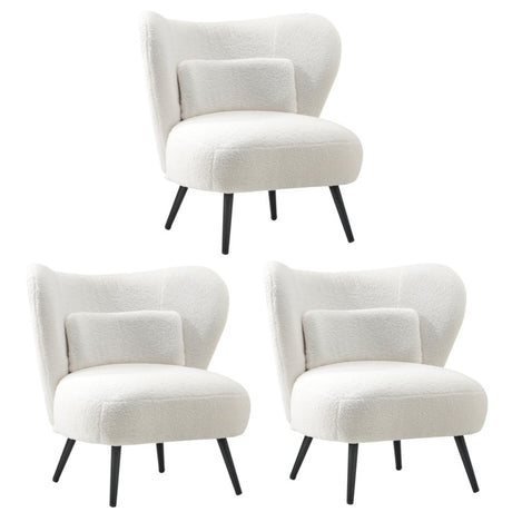 Oikiture 3x Armchair with Lumbar Pillow Wingback Boucle White