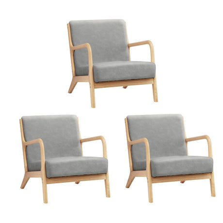 Oikiture 3X Armchair Lounge Chair Couches Sofa Wood Light Grey