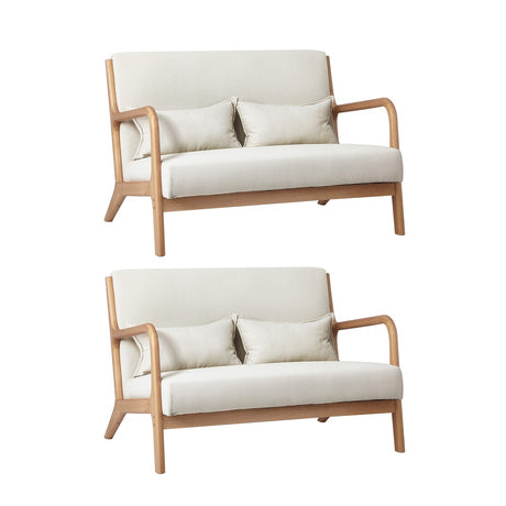 Oikiture 2X Armchair Lounge Chair Couches Sofa Wood Light Grey