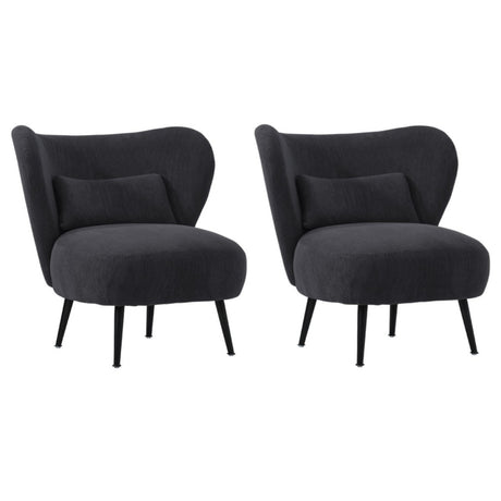 Oikiture 2x Armchair with Lumbar Pillow Wingback Velvet Charcoal