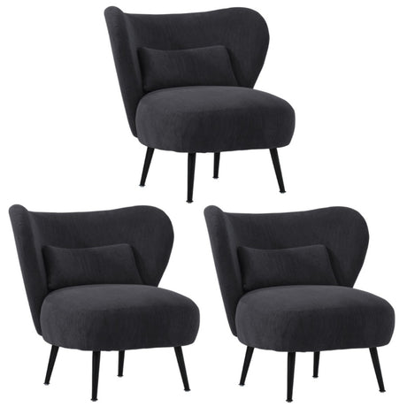 Oikiture 3x Armchair with Lumbar Pillow Wingback Velvet Charcoal