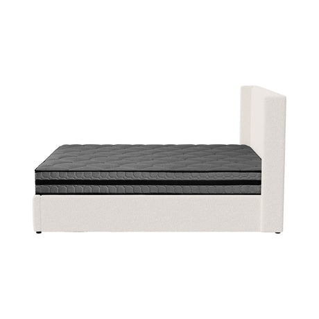 Oikiture Bed Frame with Mattress Set Queen Size Gas Lift Boucle BILY