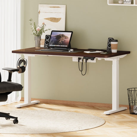 Oikiture Standing Desk Wireless Charging Single Motor 140CM White&Walnut