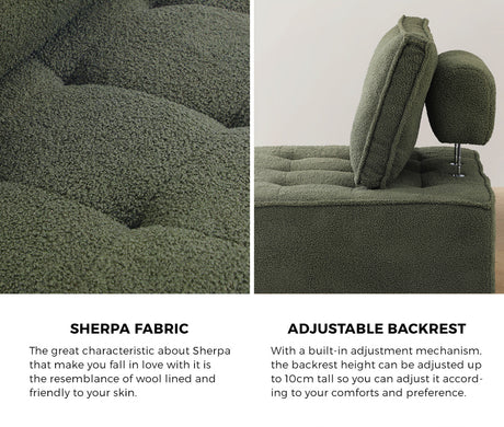 Oikiture 3PCS Modular Sofa Lounge Chair Armless Sherpa Green