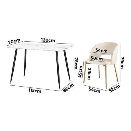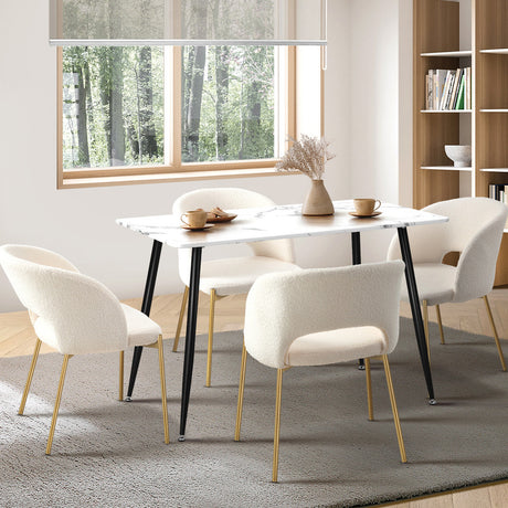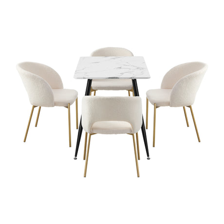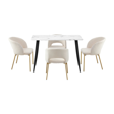 Oikiture 120cm Rectangle Dining Table with 4PCS Chairs Gold&White