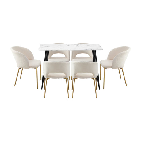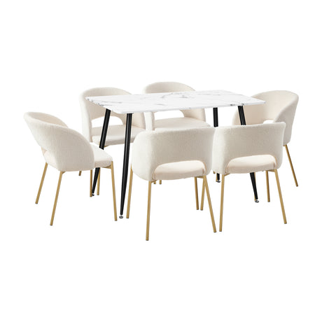 Oikiture 120cm Rectangle Dining Table with 6PCS Chairs Gold&White