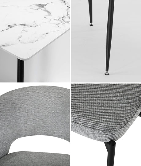 Oikiture 120cm Rectangle Dining Table with 4PCS Chairs Grey Fabric
