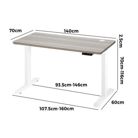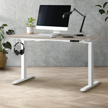 Oikiture 140cm Electric Standing Desk Single Motor White&Grey-Oak