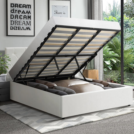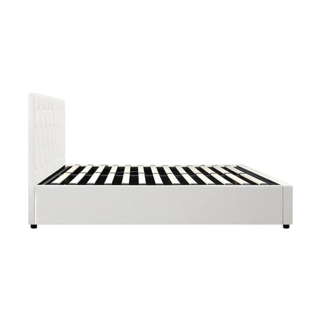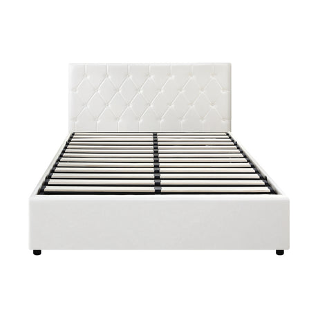 Oikiture Bed Frame Queen Size Gas Lift Base Storage Leather White